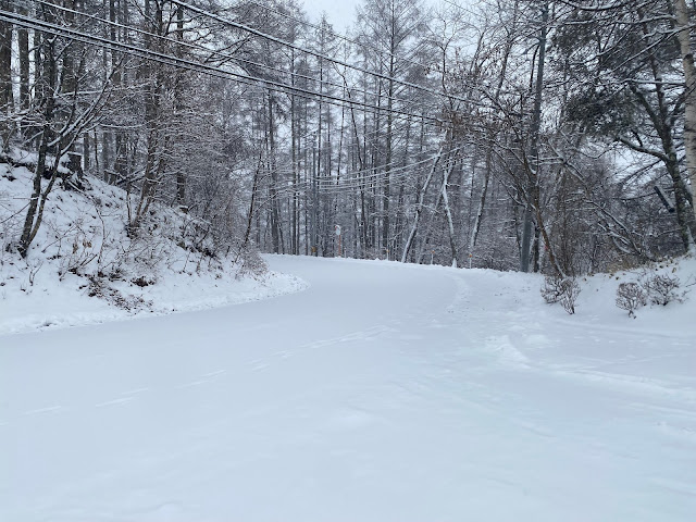 明け方から降り始めた雪は今も続いています。完全に雪景色となった蓼科です。風は無く雲の中、気温はもちろん氷点下、パウダースノーでスキーには絶好でしょうが生活する上ではかなり厳しい。